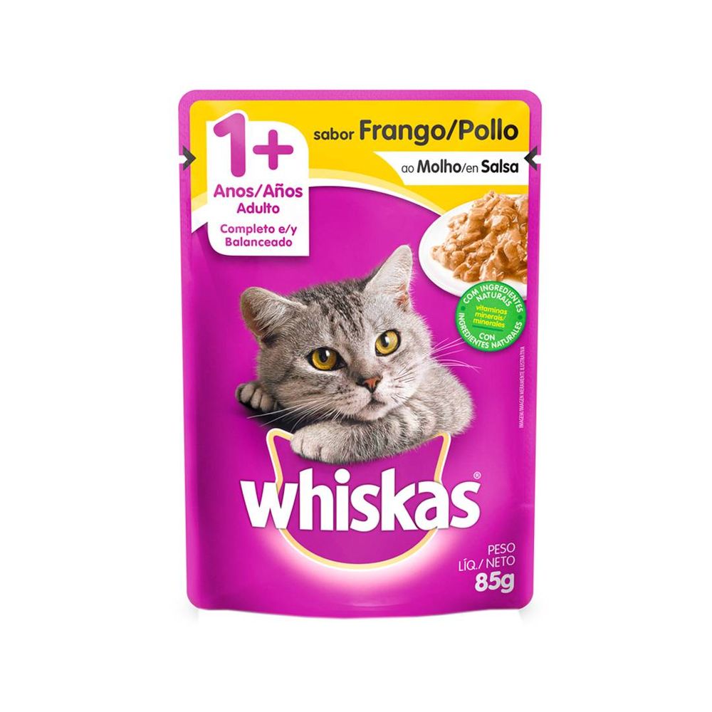 O sachê Whiskas é a porção perfeita de sabor e umidade para manter seu gato sempre hidratado e feliz. Feito com pedaços suculentos de frango cozidos no vapor, ele agrada até os paladares mais refinados. Ofereça este carinho em forma de comida e veja seu pet vibrar de satisfação.
