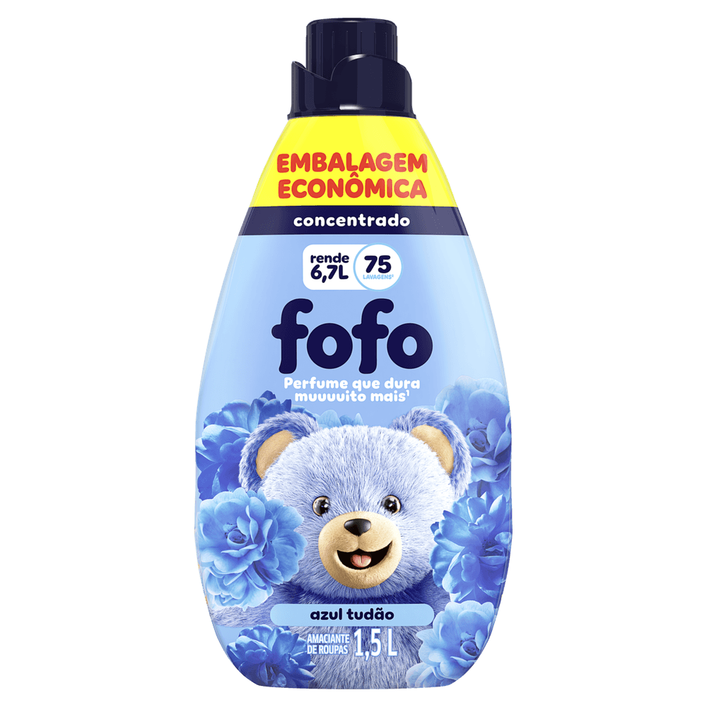 Fofo Azul Tudão possui fragrância que contém microcápsulas de perfume suave. A fragrância de Fofo faz lembrar a infância e ainda perfuma e amacia as roupas por muito mais tempo.