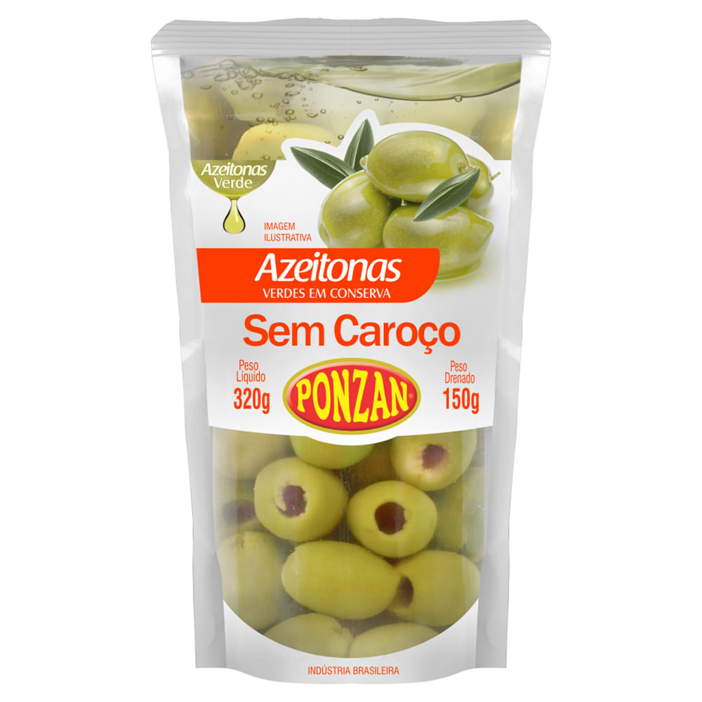 Azeitona Verde Ponzan sem Caroço Sachê 120g
