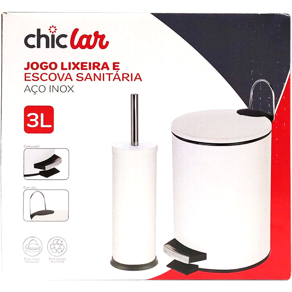 Higiene e organização para seu banheiro. O Conjunto Chic Lar traz lixeira prática e escova sanitária resistente. Uma solução essencial para o lar. Invista já nesse conjunto.