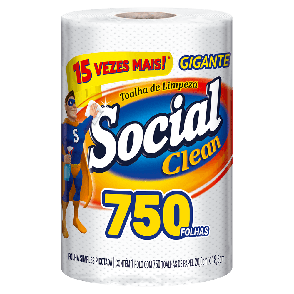 Papel Toalha Folha Simples Social Clean Pacote Gigante 750 Folhas ¿ papel toalha de folha simples, ideal para uso social e ambientes que demandam praticidade na limpeza rápida. Pacote econômico com 750 folhas, proporcionando maior durabilidade e custo-benefício para uso doméstico, comercial ou em eventos. Produto prático e eficiente para o dia a dia.