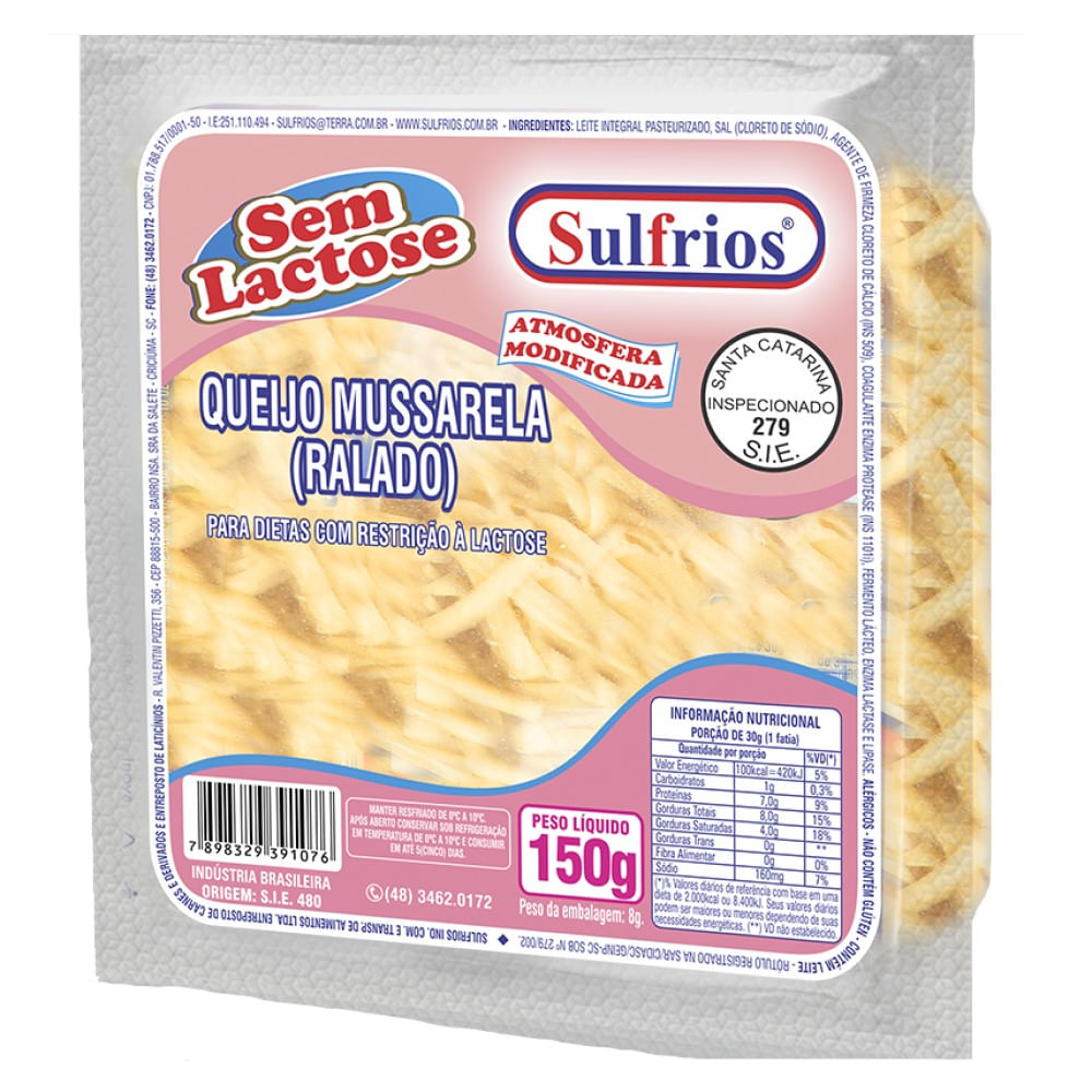 Queijo Mussarela Sulfrios Sem Lactose Ralado 150g