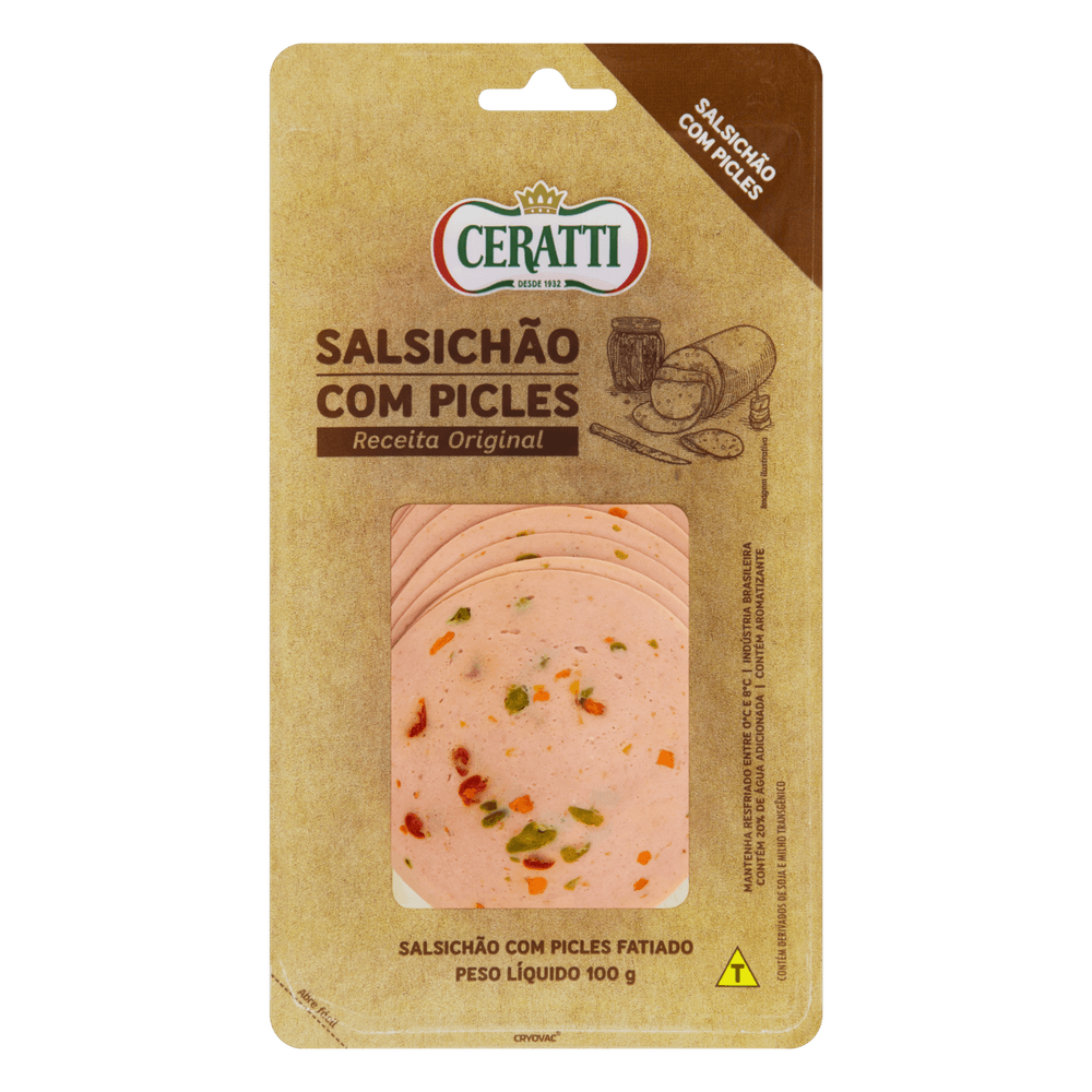 Salsichão Ceratti com Picles Fatiado 100g Embalagem