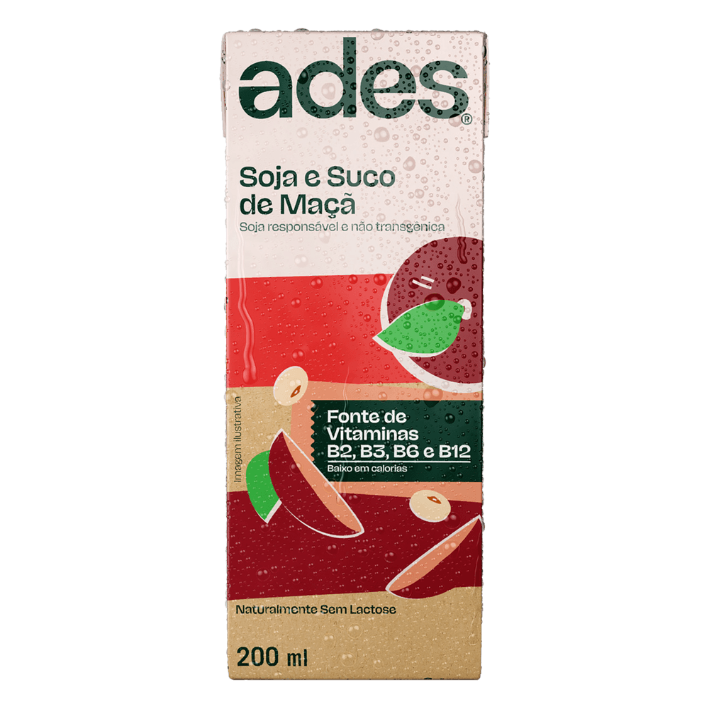 Leve o sabor suave de Ades Maçã sempre com você. Com tamanho ideal para o consumo individual, esta bebida à base de soja garante energia e nutrientes importantes para o seu ritmo diário.